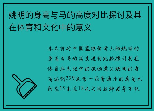 姚明,这位身高超过二米的篮球巨星,不仅在NBA赛场上创造了辉煌的成绩,也成为了中国篮球的象征。本文将深入探讨“明星高攀姚明背后的故事与篮球巨星的荣耀之路”,从他的成长经历、职业生涯、对中国篮球的影响以及退役后的生活这四个方面进行详细阐述。在姚明身上,我们看到的不仅是一个运动员的奋斗历程,更是对梦想执着追求的人生启示。通过这些故事,可以更好地理解他所承载的责任与荣耀,以及他如何以自己的方式推动着整个...