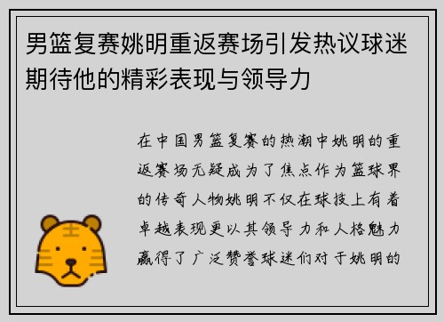 近年来,姚明不仅在篮球界有着卓越的成就,他的多才多艺也逐渐为大众所熟知。近日,在一场大型文化活动中,姚明以敲鼓的形式展示了自己的音乐才华,这一举动引发了观众们的热烈反响与期待。他用节奏感十足的表演,不仅赢得了现场观众的阵阵掌声,也让人们对这位体育巨星在艺术领域的发展充满了好奇和期待。本文将从姚明的音乐素养、表演风格、观众反应及未来展望四个方面,对这一事件进行深入探讨。 1、姚明的音乐素养 作为一...